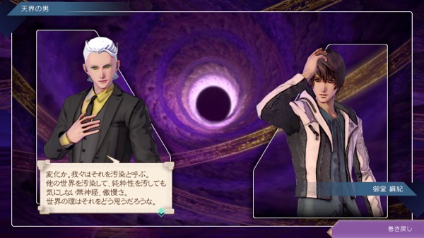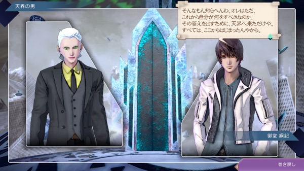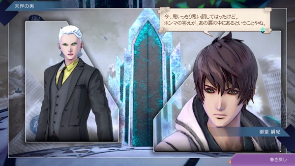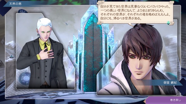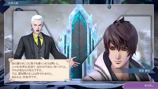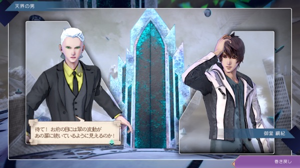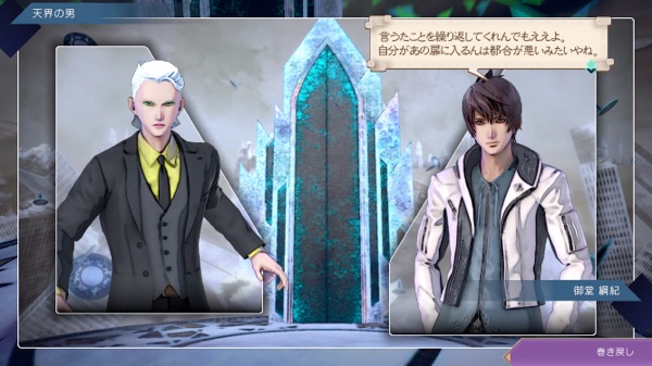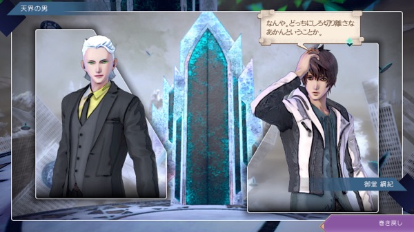 この場合の天界の男は御堂が扉の向こうへ行ける存在とは思ってなかった? さっきの関係性とは違って(さっきはあなたと呼んでたけど今度はお前)、御堂のことを下に見ている
