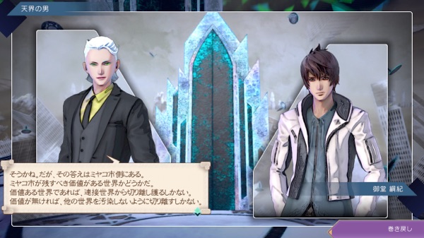 たしかに天界人の幸せはないのかもしれないけど、個々の世界にはそれぞれの幸せがあるのだから、天界人の勝手でそれを塗り替えていいの?(ってこのゲームの意図としてプレイヤーに思わせたそう)